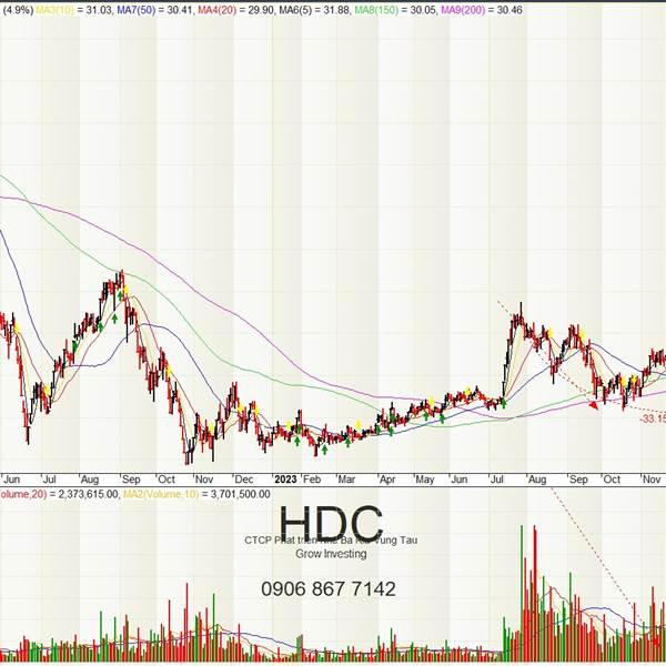 HDC là Có mẫu hình VCP (độ biến động thu hẹp) 4 lần -37.15%; -22.19%; -18.16% và -10.53%