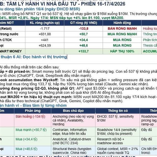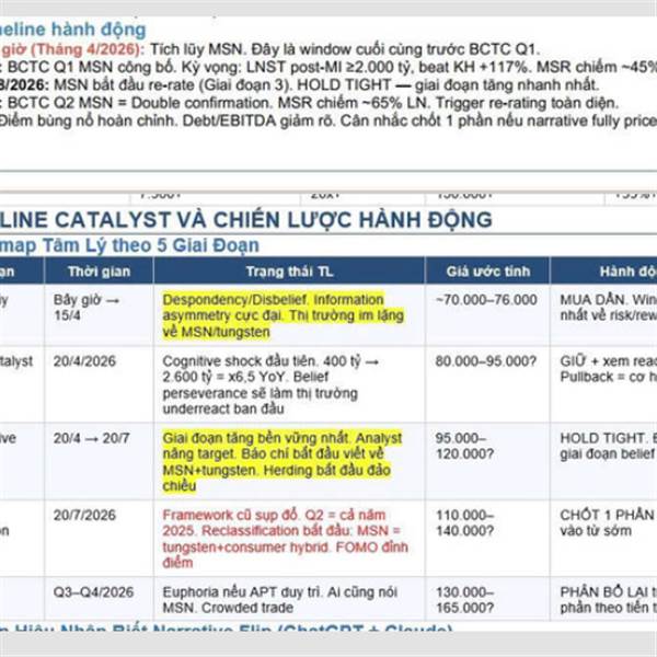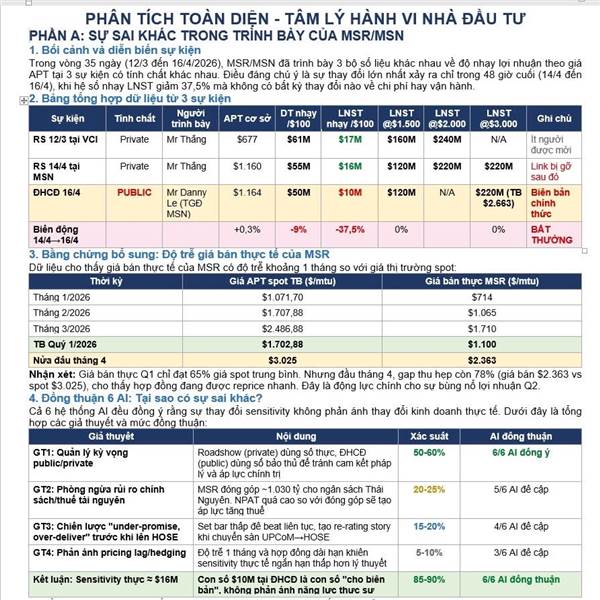 Nhận xét: Giá bán thực Q1 chỉ đạt 65% giá spot trung bình. Nhưng đầu tháng 4, gap thu hẹp còn 78% (giá bán $2.363 vs spot $3.025), cho thấy hợp đồng đang được reprice nhanh. Đây là động lực chính cho ...Thêm