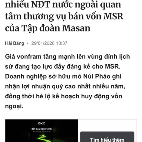 Giá vonfram lên cao kỷ lục, nhiều NĐT nước ngoài quan tâm thương vụ bán vốn MSR của Tập đoàn Masan