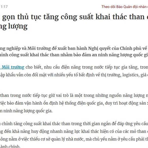Đề xuất rút gọn thủ tục tăng công suất khai thác than để bảo đảm an ninh năng lượng😅