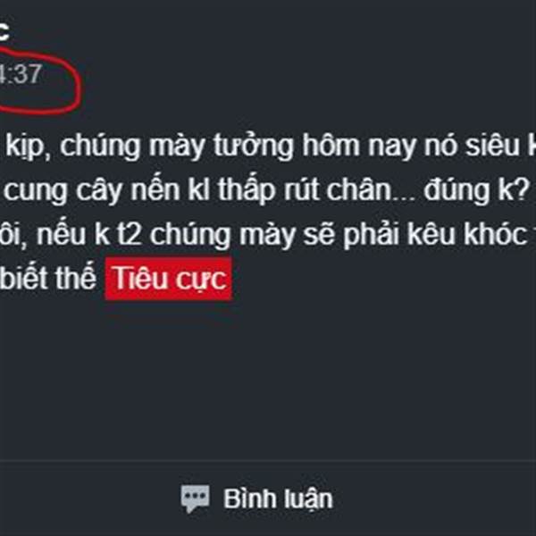 rất may mắn cho chúng mày là sáng nay có tin quá tốt nếu k thì sáng ra nó đã úp bô k thương tiếc từ lâu rồi. thậm chí sáng ra còn kéo xanh 4% mà chúng mày còn k tranh thủ chạy thì a chịu rồi, a đã gào...Thêm