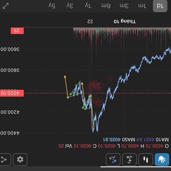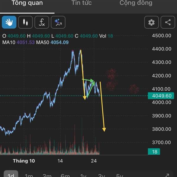 Hiện tại đang treo dưới MA10, nếu không bật mạnh lên mà về dưới 4.000 thì xác định vô tre...Thêm