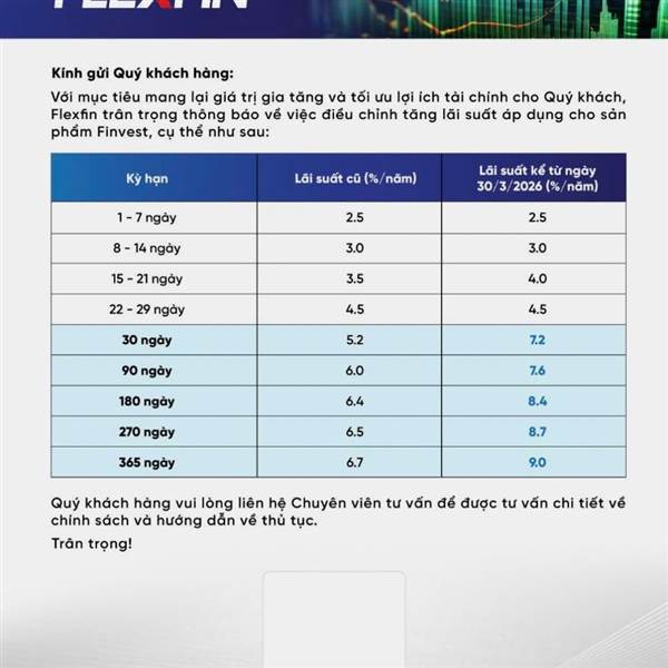 HÃY NHÌN VÀO CON SỐ lãi suất 7,2% khi gửi 30 ngày, đây là mức lãi suất áp đảo hoàn toàn so với cả thị trường (Vietc...Thêm