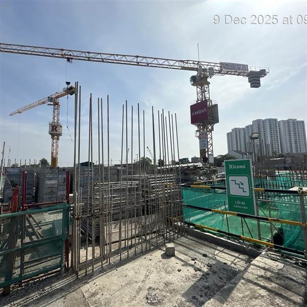 📌 Tiến độ công trường dự án The Gió Riverside ngày 9/12/2025. Tổng thầu Ricons đang tập trung thi công các hạng mục: Dầm sàn kết cấu hầm B1, thi công cốp pha - kết cấu cột hầm B2, l...Thêm