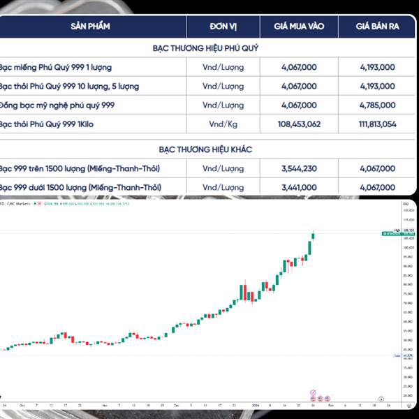 BẠC ĐIỀU TIẾT CUNG - CẦU SAU ĐÀ TĂNG MẠNH, NÊN LÀM GÌ? Cập nhật và Nhận định giá Bạc ngày 27/01/2026 ------- I. Giá bạc mới nhất ▪ Trong nước: Mua vào 110 – Bán ra 114, tiếp tục duy trì vùng giá cao. ▪ 7 n...Thêm